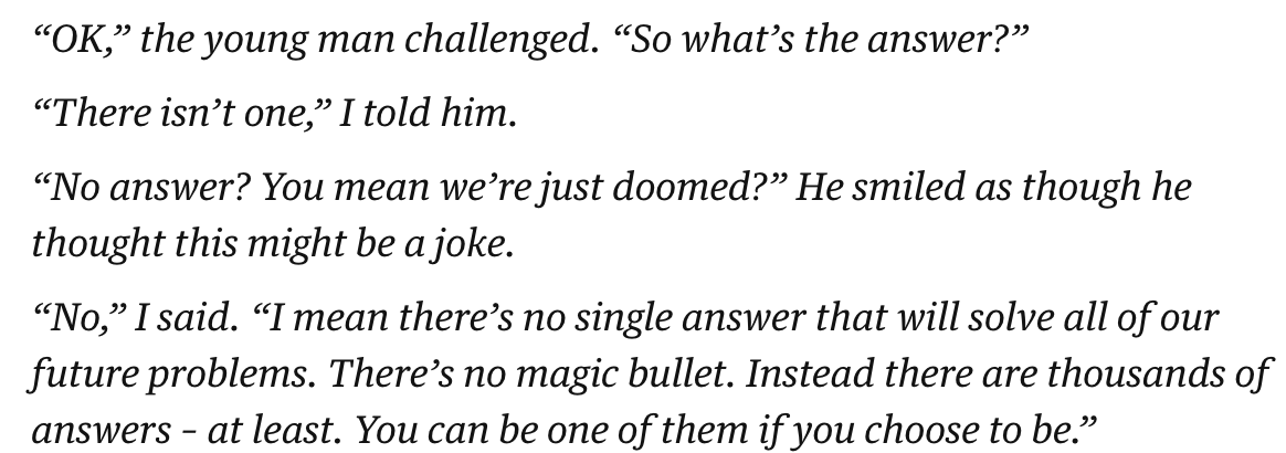 ⇒ We need more people doing something instead of not doing something. Action is better than silent sacrifice
