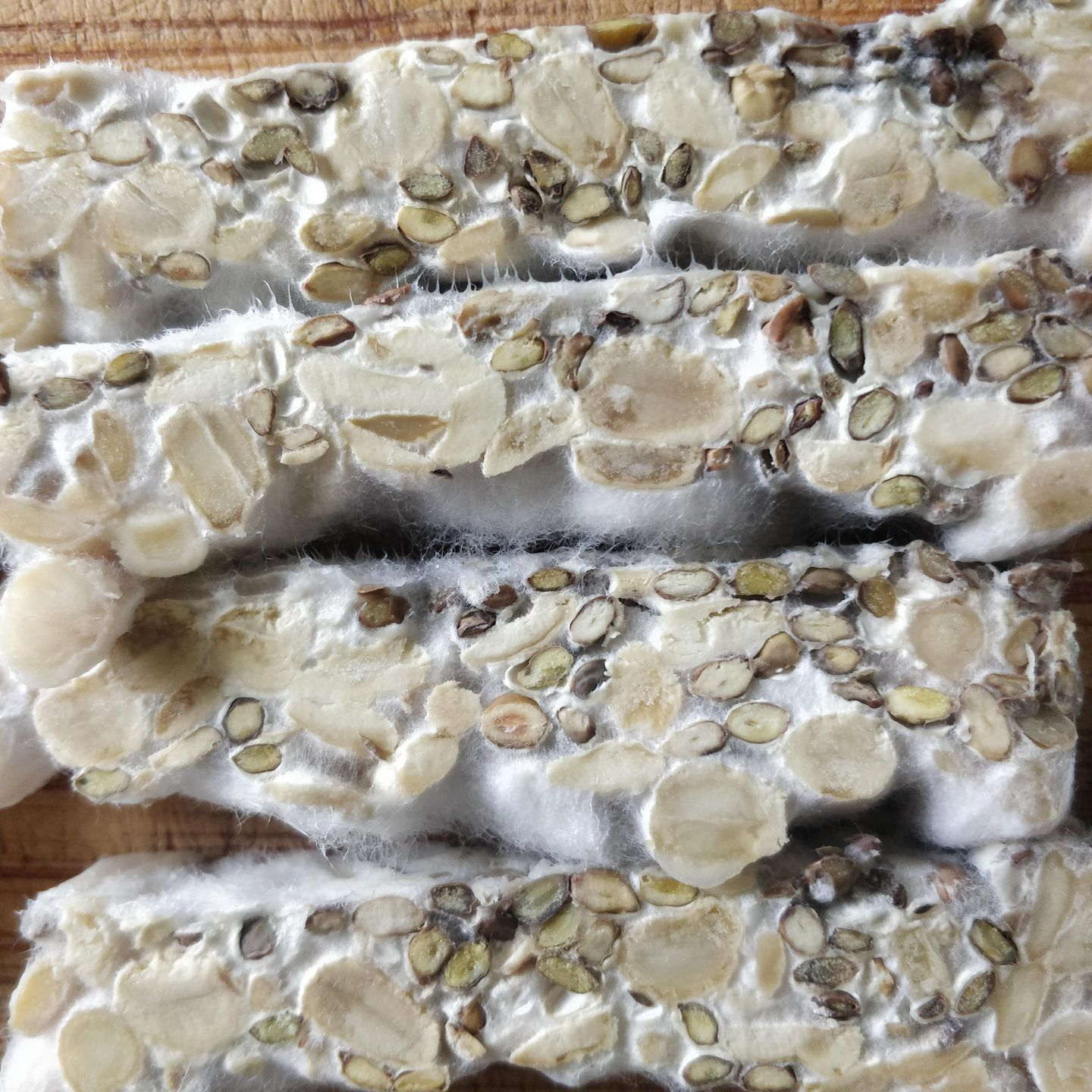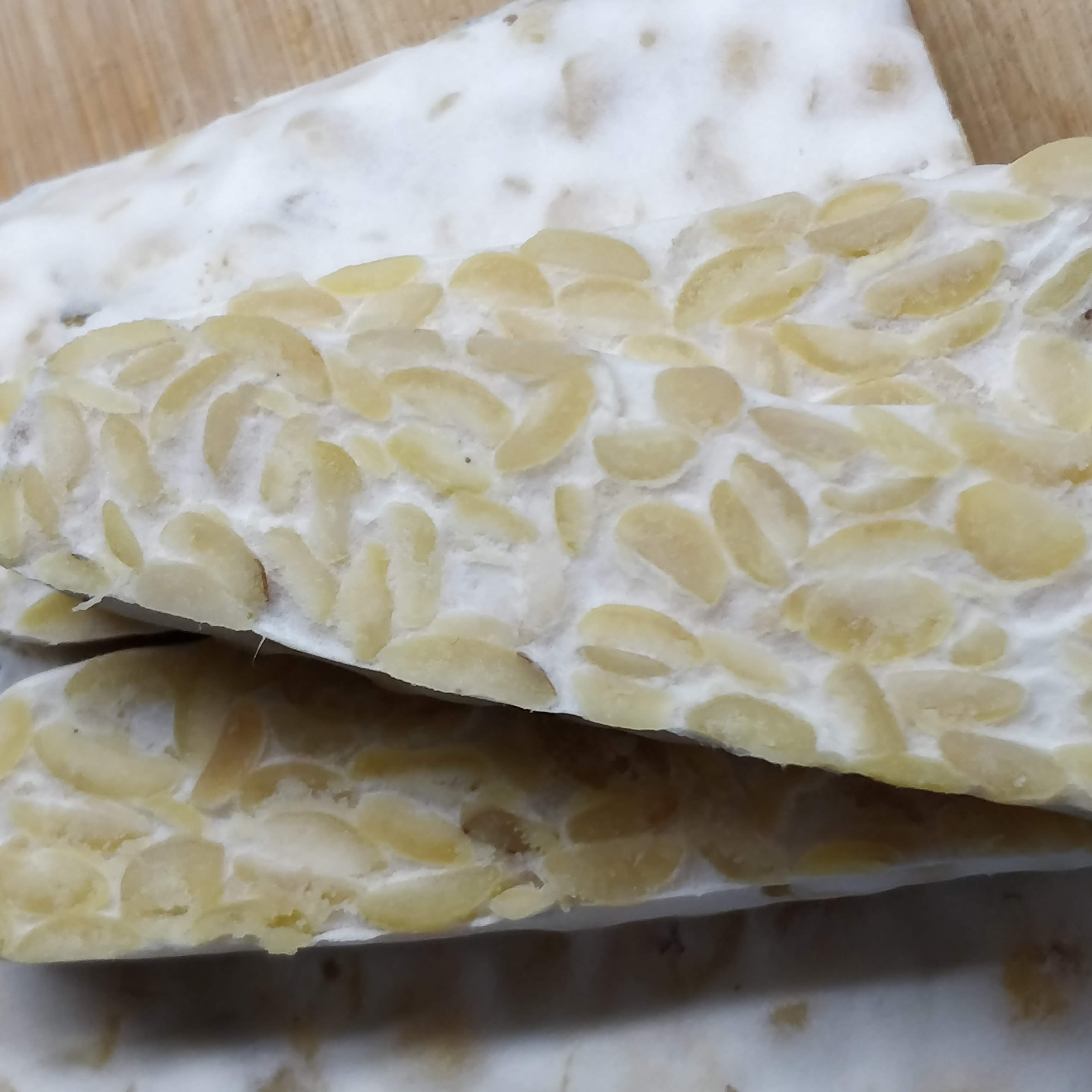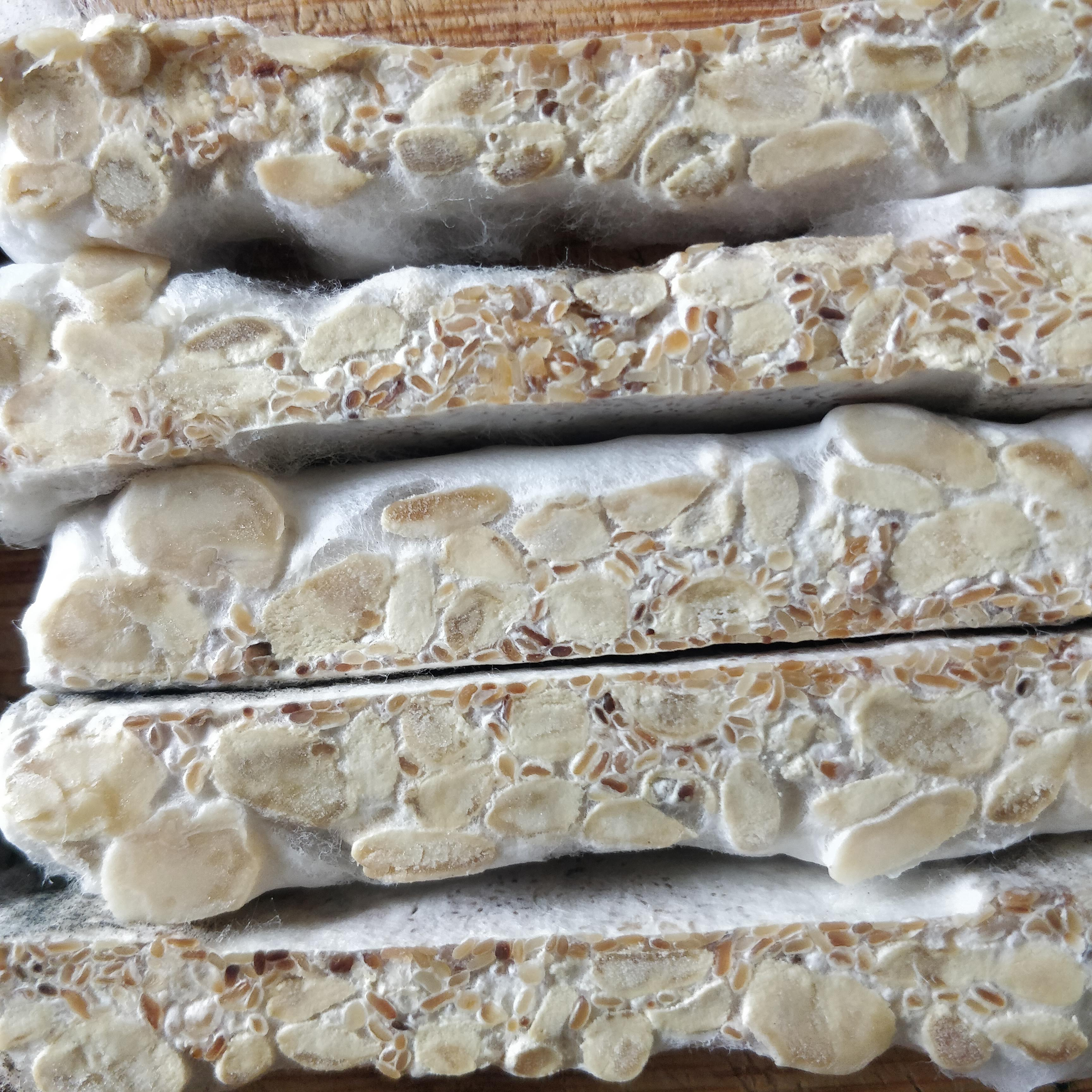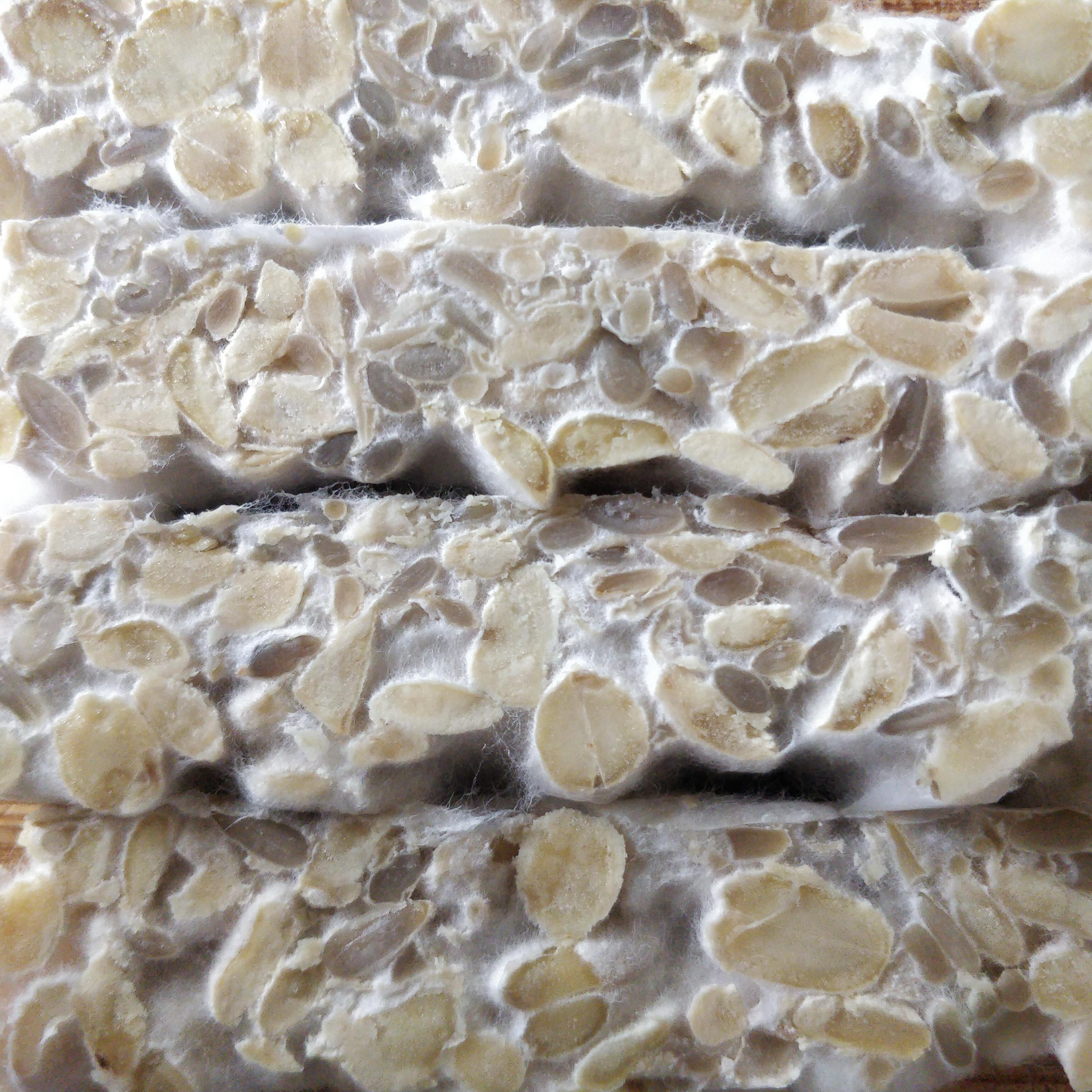Test: Addition of things that give more texture to Fava bean tempeh: Sunflower seeds, sesame seeds.