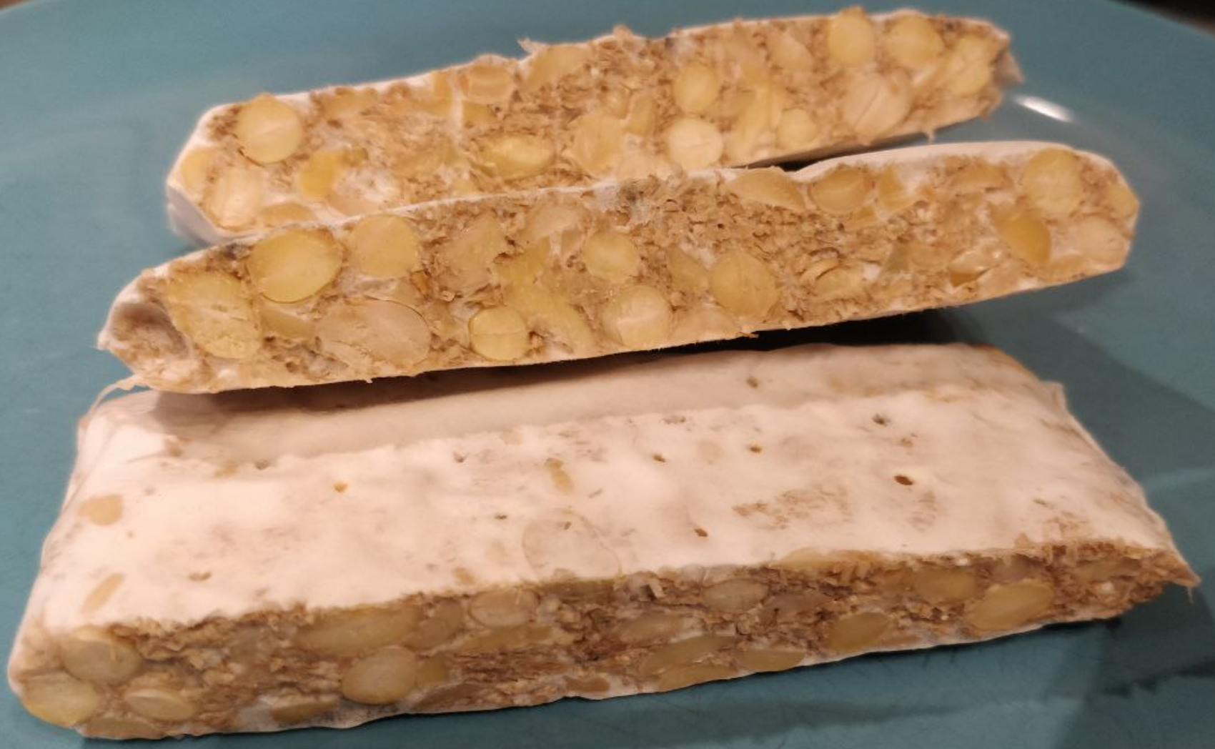 36h incubation samples: Holds together better than 24h sample. Definitely a bit of a fermented taste. Looks very attractive with the embedded lentils. Could be more flavoured, the 1/2 concentrated soy-water mix is not as good as the normal one.