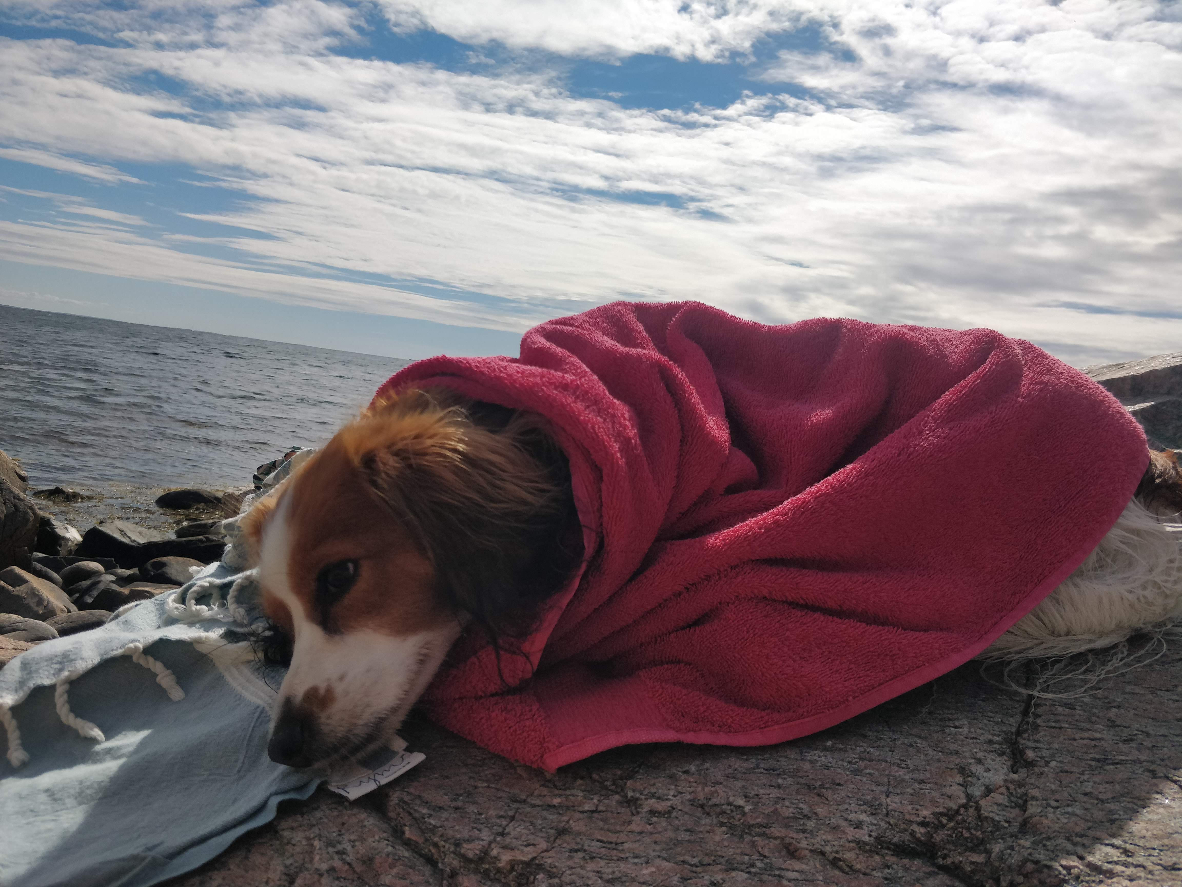 Same temperature in the water and in the sea (18c). Refreshing for human and dog 😅