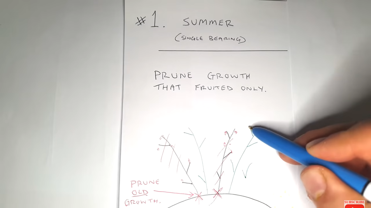 2-year cycle Green and brown canes One big harvest during summer. First year canes: Leafy growth, green. They will bear fruit in the next year. Second year canes : Brown, older, grown in first year and turn a darker colour in the second year. Berries will appear on them during summer. Once they’ve fruited, they are no good any more.
