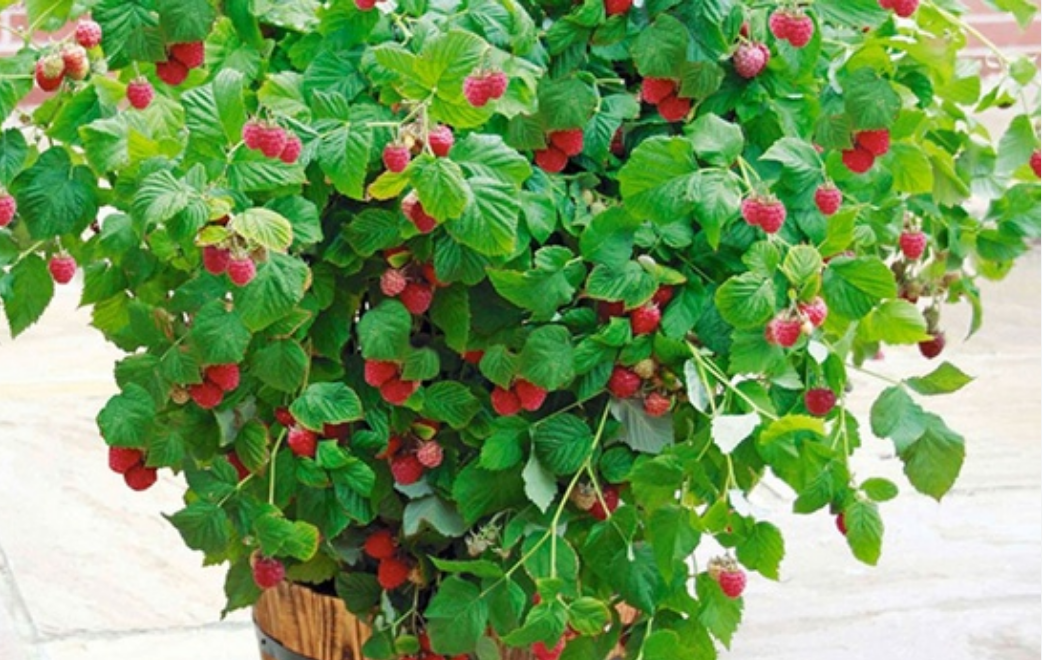 Lättodlat, friskt hallon med attraktiva röda, fasta och söta bär på upprätta, taggfria skott.