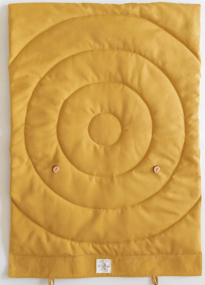 Materials: dralon, bio cotton, plum wood buttons, recycled polyester, eco friendly dralon, eco friendly polyester, recycled fabric. The quilted surface is soft and cuddly on both sides and gives your dog a comfortable place to rest.