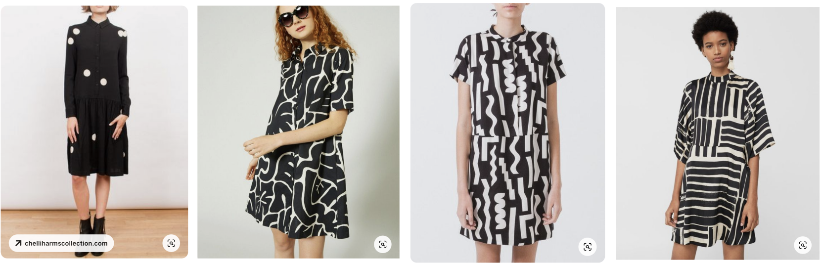 Shirt dress in white and black graphic print or a big fun colourful print. Pattern suggestion: Helmi tunic
