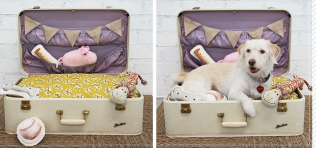 (Dog bed in an old suitcase. Credit: https://athomewithashley.com/diy-suitcase-dog-bed/)